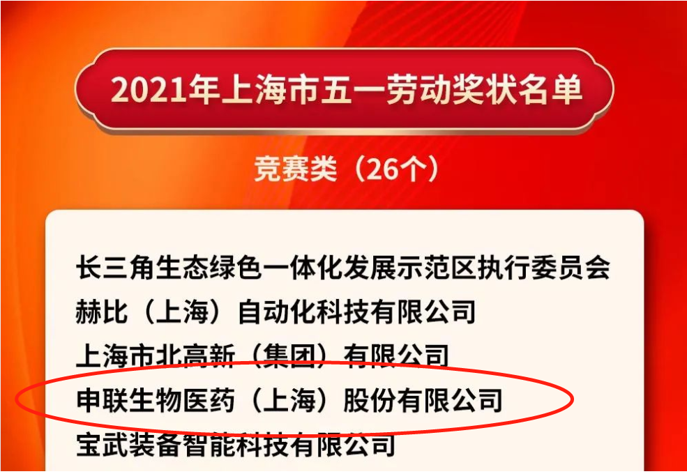尊龙官网入口生物喜获“2021年上海市五一劳动奖状”