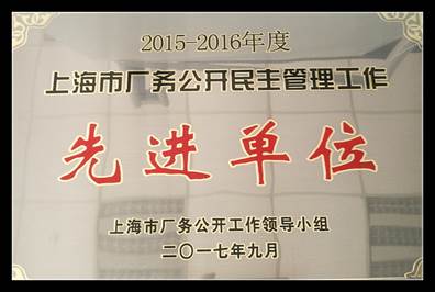 我司喜获 “上海市厂务公开民主管理工作”先进单位荣誉称号。。