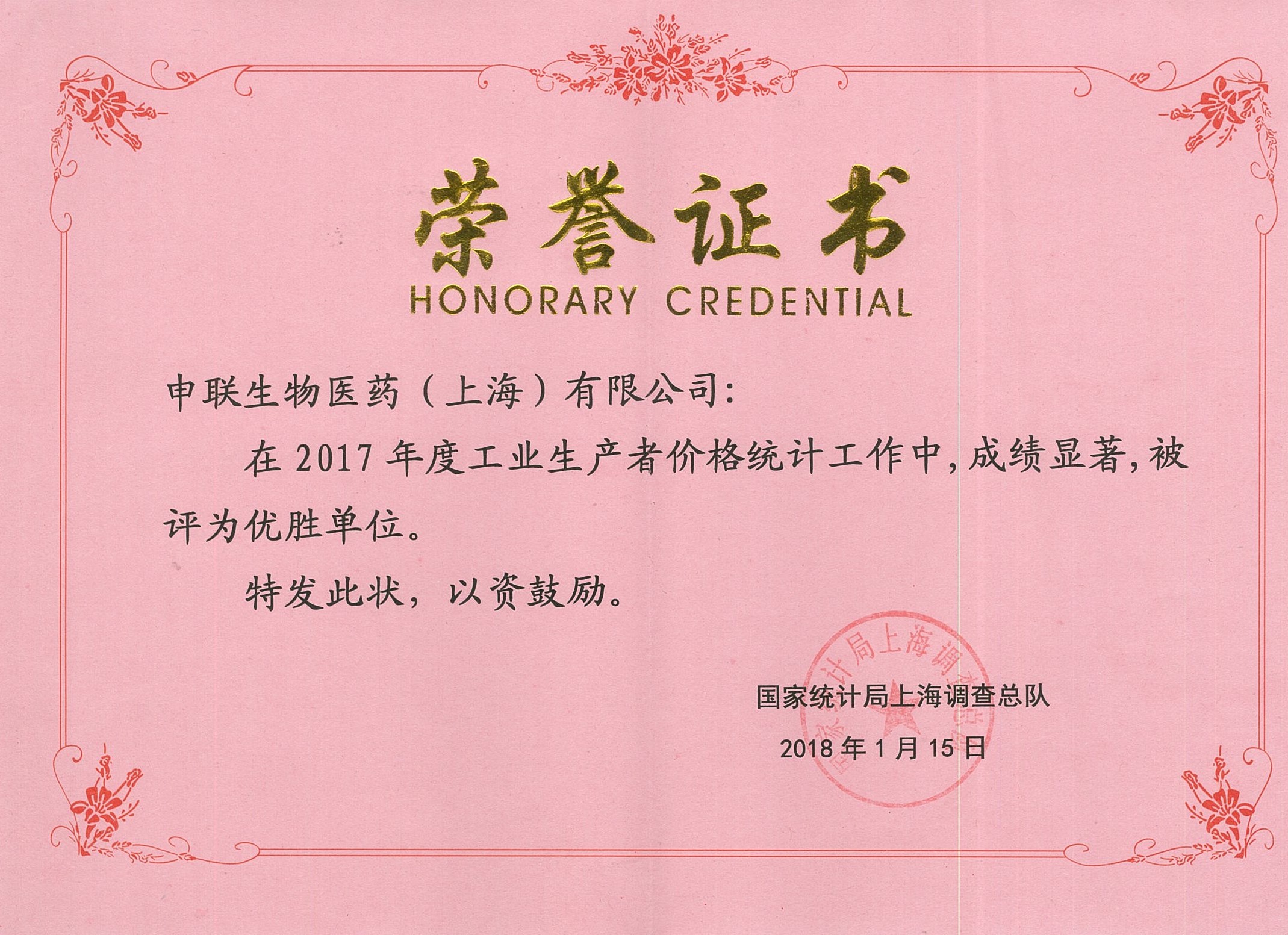 我尊龙官网入口荣获2017年度工业生产者价格统计优胜单位